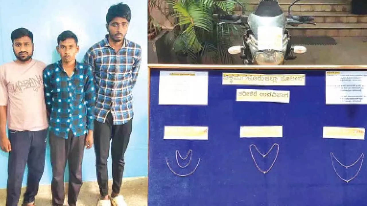 Chikkamagaluru: In a bizarre incident that highlights how technology is now aiding crime, police in Chikkamagaluru district have busted a gang that used Google to learn how to commit theft. The trio, who searched online for tips on how to steal without getting caught, managed to snatch three women’s mangalsutras in just one hour before the law finally caught up with them. The gang — identified as Kallesh, Raju, and Basavaraj from Yavakanamaradi village in Belagavi district — were arrested by Birur police. Police have recovered 68 grams of stolen gold jewellery and a Pulsar bike used in the crimes.