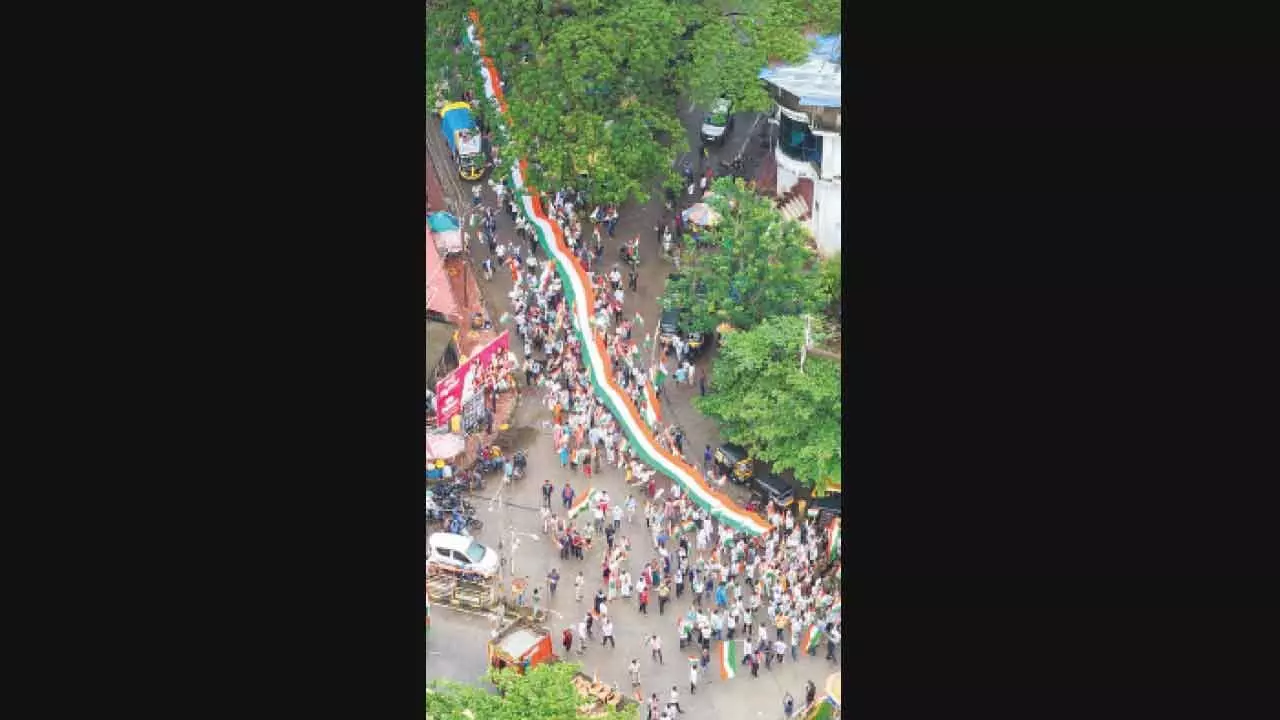 The rally began with a special prayer at Maladevi Temple, attended by Uttara Kannada MP Vishweshwar Hegde Kageri, former MLA Roopali Naik, and other dignitaries. The yatra featured an impressive half-kilometer-long Indian tricolor, which became the central attraction of the event. The sound of Vande Mataram echoed throughout the procession, adding emotional fervor to the march.