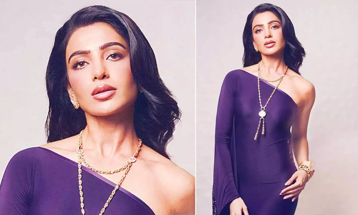 Samantha Ruth Prabhu turned heads in a stunning deep purple gown that seemed straight out of a dream. The elegant one-shoulder silhouette hugged her figure perfectly, exuding both grace and quiet strength. The gown’s soft yet powerful drape reflected Samantha’s effortless poise and timeless style.