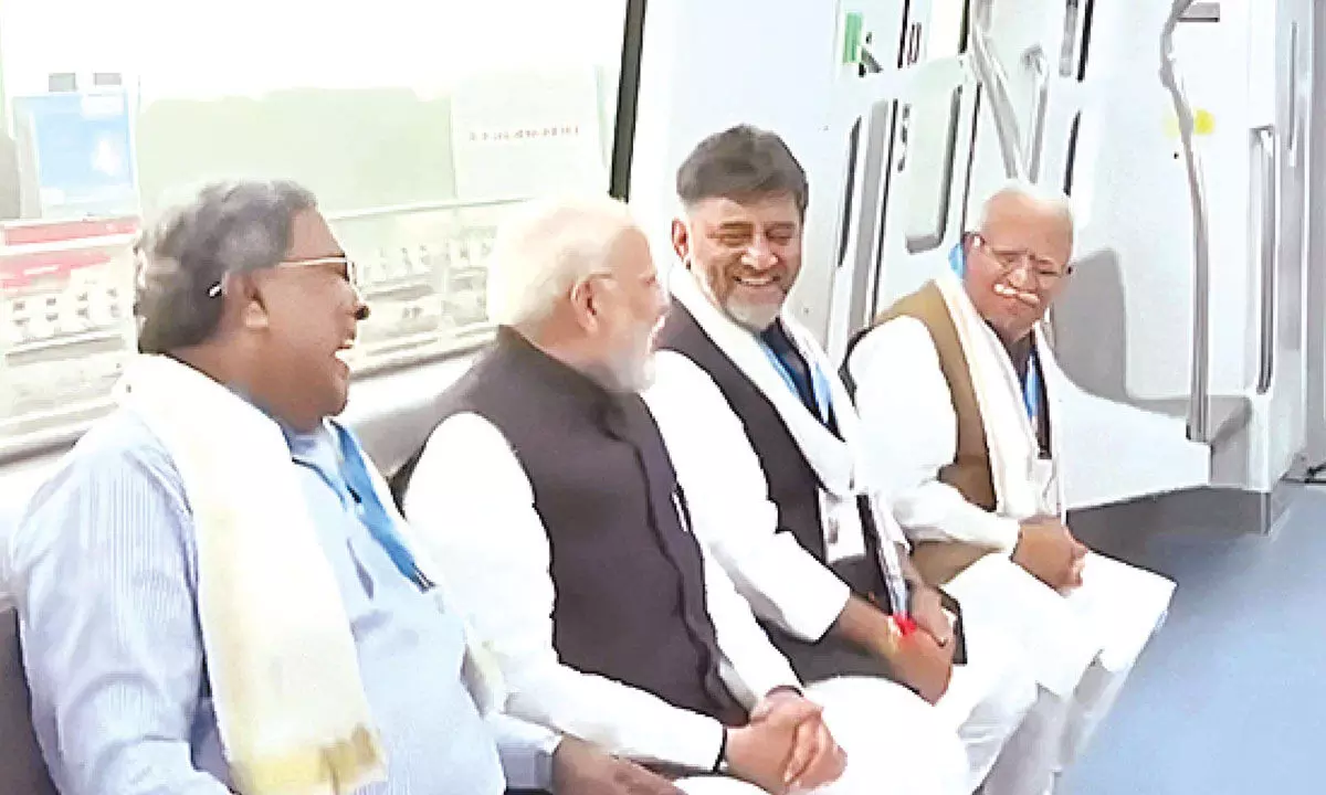 When the Prime Minister took a ride on the newly inaugurated 19.15-kilometre Yellow Line Metro from R.V. Road to Bommanahalli Metro Station, the three leaders -- PM Modi, CM Siddaramaiah and Dy CM Shivakumar -- sat side-by-side, appearing to be enjoying the journey, engaging in delightful conversation.