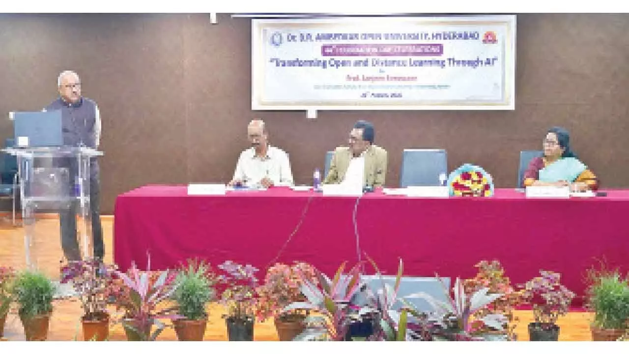 Hyderabad: Prof. Sanjeev Sonawane, Vice-Chancellor of Yashwant Rao Chavan Maharashtra Open University (YCMOU), delivered his chief guest lecture on “Artificial Intelligence-based Transformation in Universal Distance Education,” emphasizing that AI and emerging technologies are reshaping the future of universities. Speaking at the 44th Foundation Day of Dr. B. R. Ambedkar Open University (BRAOU) here on Tuesday, highlighted that distance education is evolving rapidly to meet modern challenges, with AI, augmented reality (AR), and virtual reality (VR) playing pivotal roles.
