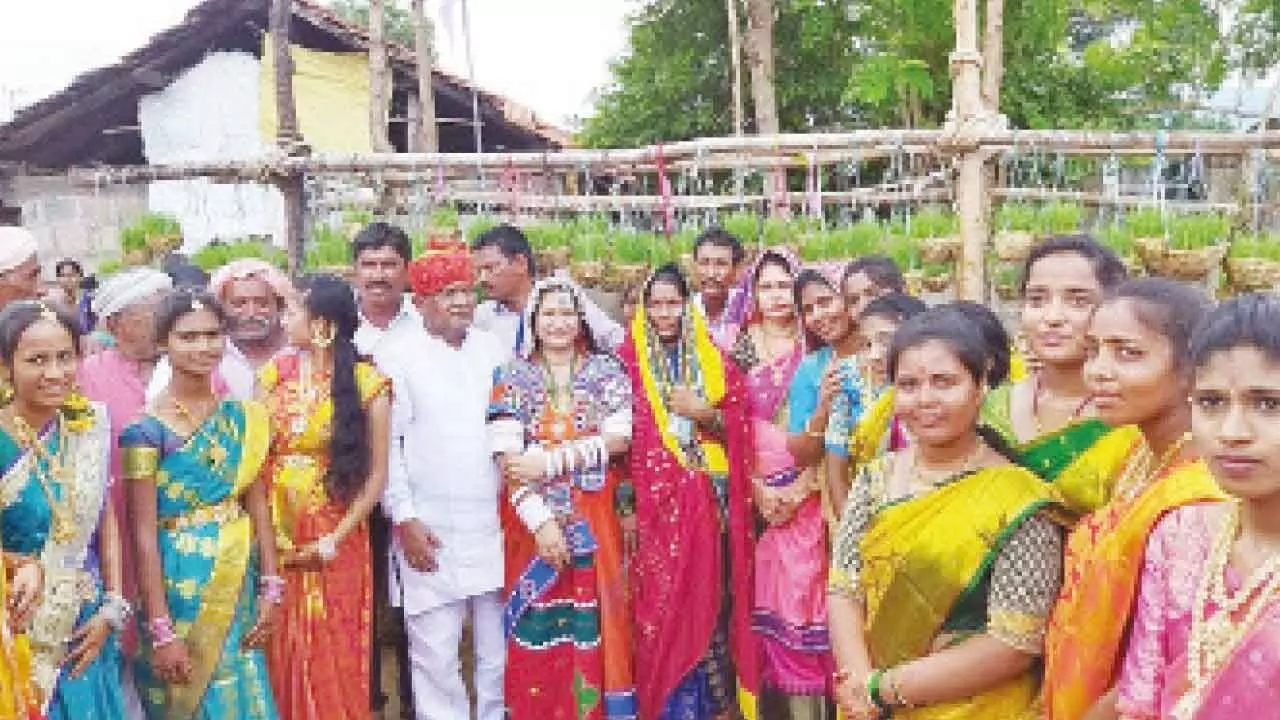 From that day onwards, women fetch water three times a day from a nearby well or pond, pour it into the baskets, and nurture the wheat until the immersion ceremony. Each basket belongs to one girl. This festival is living proof that the Banjaras are worshippers of nature.