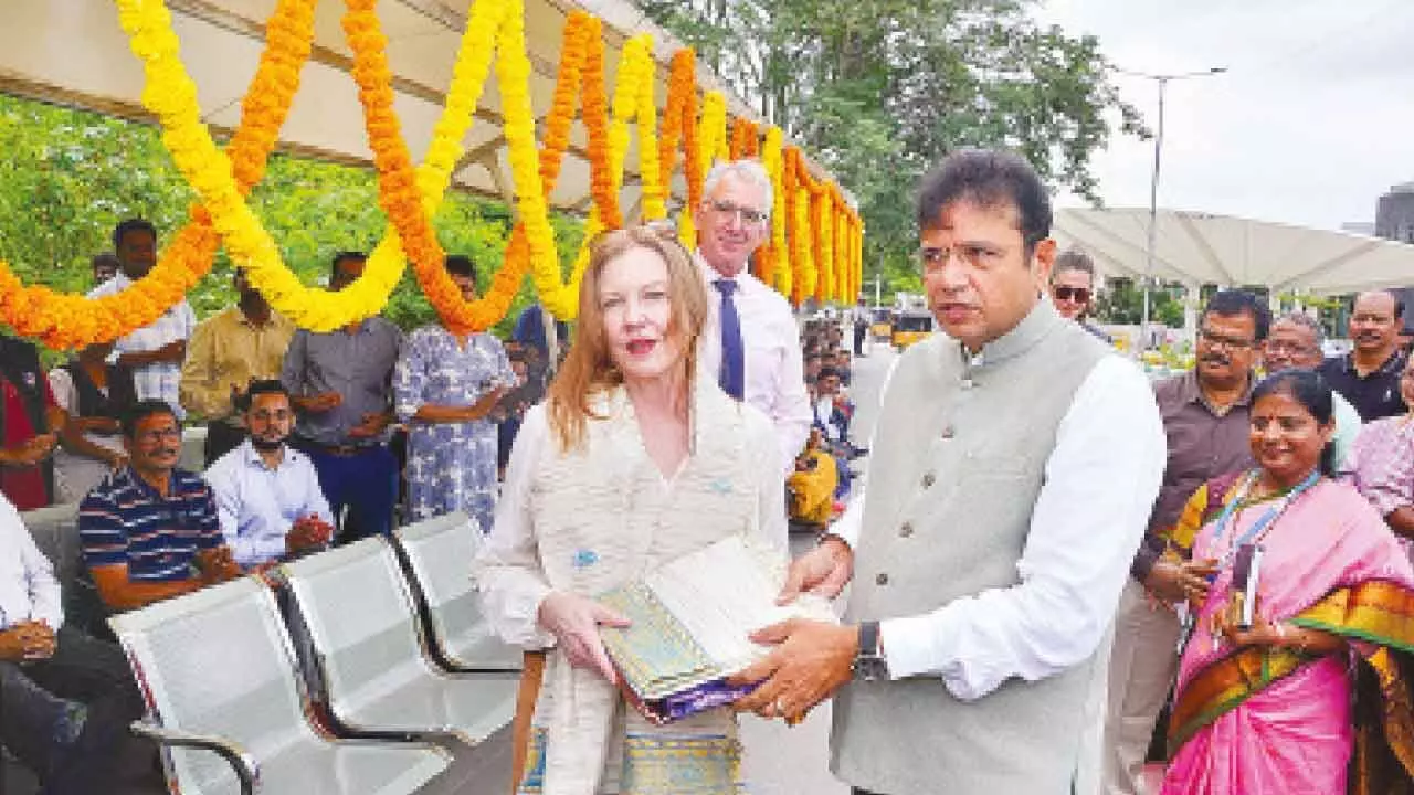 He mentioned that this new waiting area will not only serve business collaborations but will also help strengthen people-to-people relations between international partners. Hyderabad US Consul General Jennifer Larson and other dignitaries participated in the event.