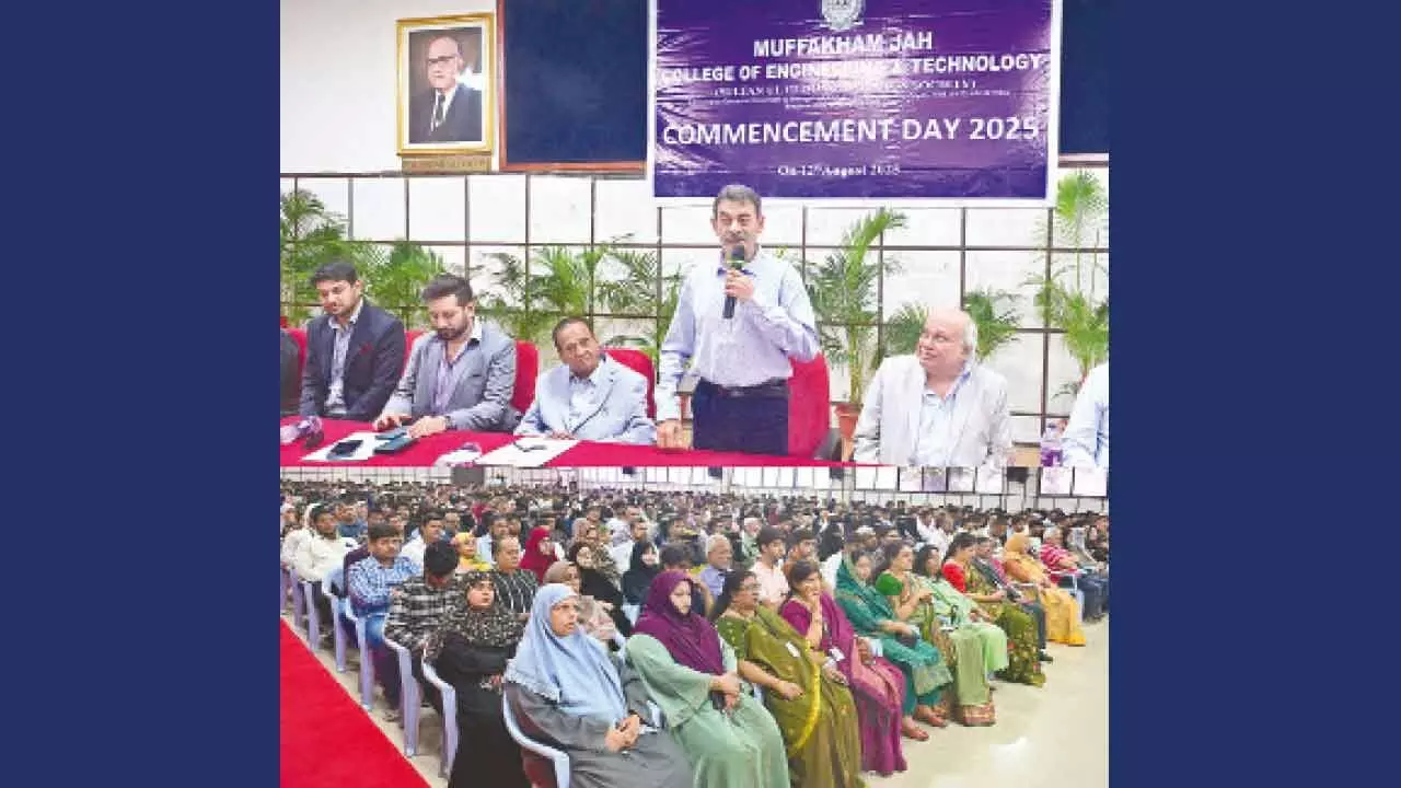 Hyderabad: Muffakham Jah College of Engineering and Technology (MJCET) celebrated Commencement Day 2025 with great pomp and enthusiasm, marking the beginning of a new academic journey for its incoming engineering students. The event was held at the iconic Ghulam Ahmed Hall, which was packed to capacity with students and a large number of parents.