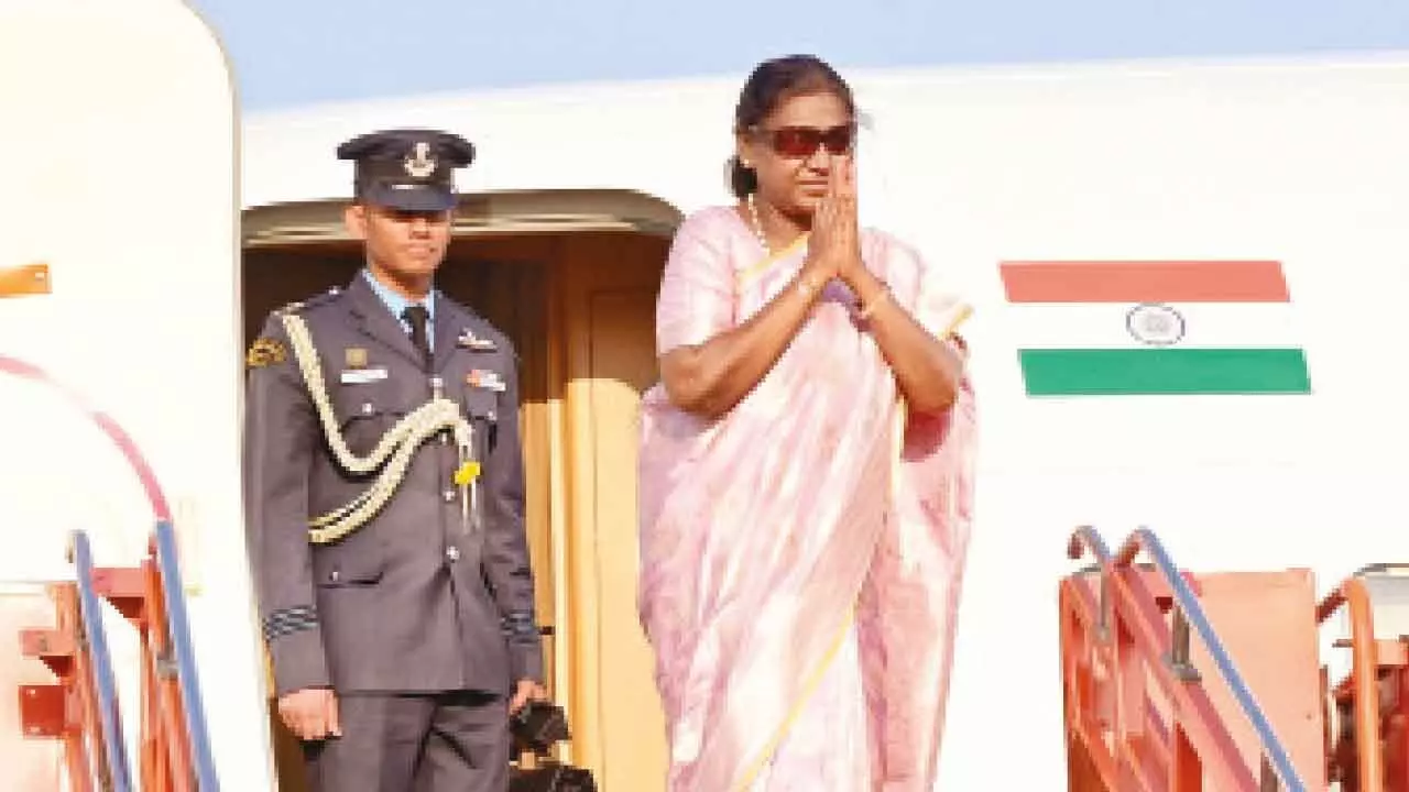Hyderabad: President Droupadi Murmu on Monday left for Delhi from here after concluding her customary winter sojourn. Telangana Governor Jishnu Dev Varma, Chief Minister A Revanth Reddy, Union Coal Minister G Kishan Reddy and other dignitaries gave a warm send off to the President at the Hakimpet Air Force Station here. The President's sojourn at the Rashtrapati Nilayam here, one of the Presidential Retreats, began on December 17.