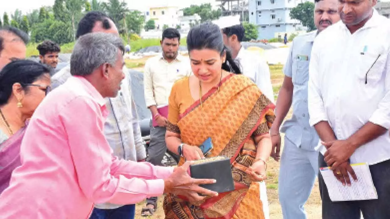 Agarwal personally inspected the paddy heaps and measured moisture levels, ensuring that the stock was being handled properly. She also discussed procurement logistics with Civil Supplies and Agriculture department officials to streamline the process during the rain-affected period.