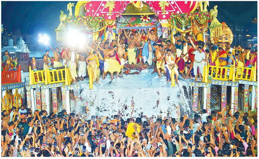 The servitors broke nine large earthen pots, three each placed before Lord Jagannath, Lord Balabhadra and Devi Subhadra, filled with sweet drinks after offering them to the deities. The spillover drink is meant for the subsidiary deities placed on the chariots, evil spirits and ghostly bodies. The devotees are forbidden to collect and drink the Adhara Pana.This signifies the end of Rath Yatra as the deities in a ceremonial procession will return to their sanctum sanctorum on Tuesday. The special ritual.