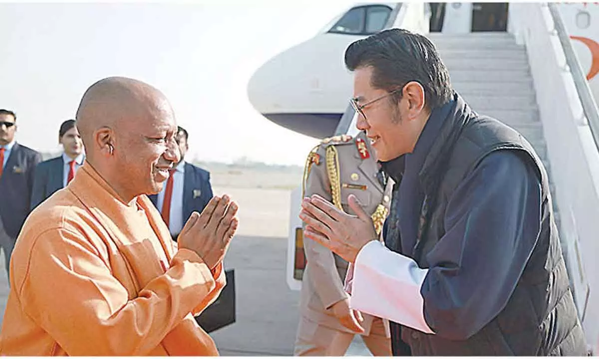 Lucknow : King of Bhutan, Jigme Khesar Namgyel Wangchuck, arrived in Lucknow on Monday. Chief Minister Yogi Adityanath warmly welcomed the King at Chaudhary Charan Singh International Airport.