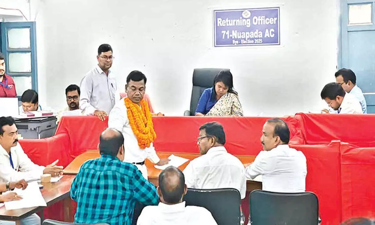 Nuapada: The candidates of the ruling BJP and the Opposition Congress on Saturday filed their nomination papers for the by-election to the Nuapada Assembly seat in Odisha.