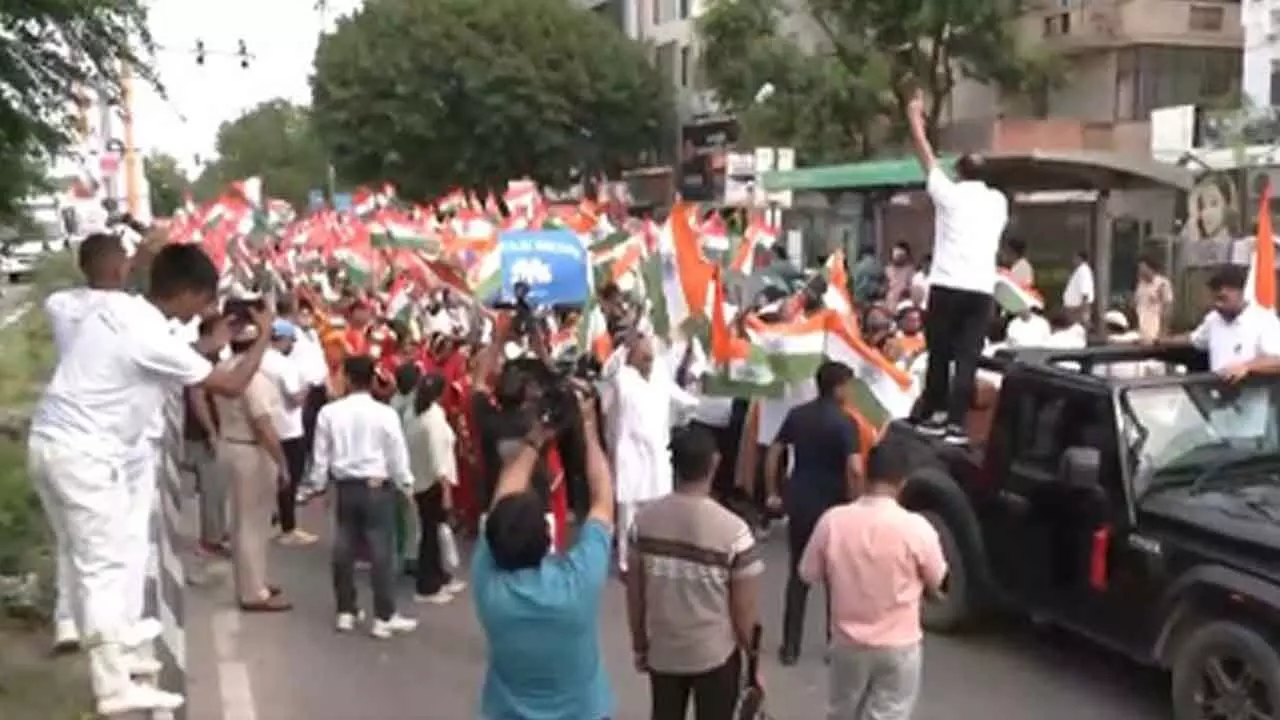 Delhi Minister Ashish Sood leads Tiranga Yatra in Janakpuri