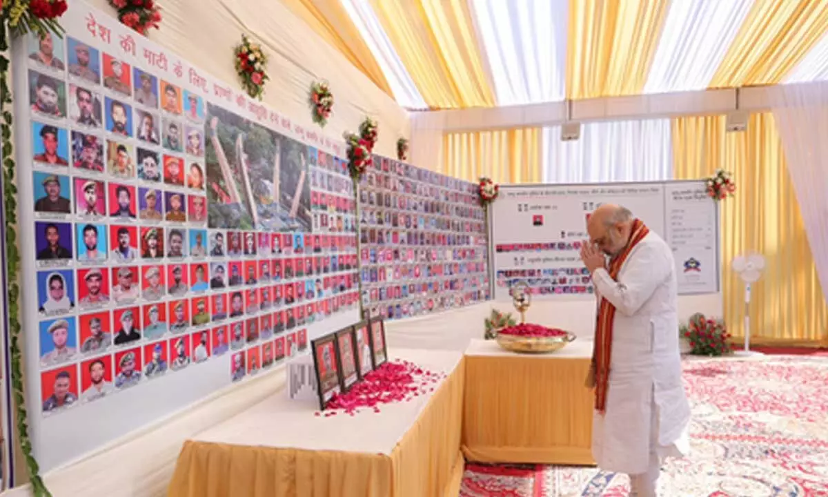 After landing at the technical area of Srinagar international airport, where he was received by the Lt Governor Manoj Sinha, Chief Minister Omar Abdullah, senior army and civil officers, Amit Shah drove to the Humhama area of Srinagar city, where the family of martyred J&K police Deputy SP Humayun Bhat lives.