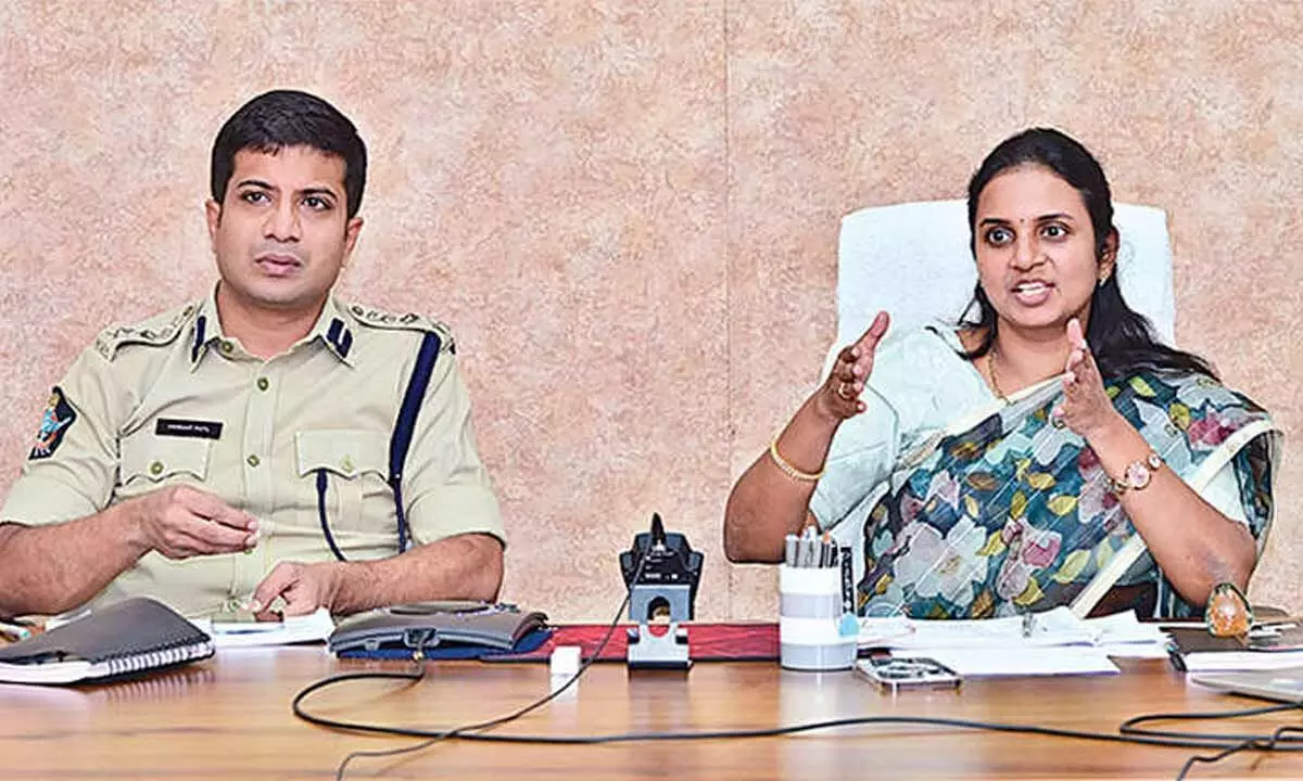 District Collector Dr A Siri along with SP Vikrant Patil addressing road safety meeting at Kurnool Collectorate on Wednesday