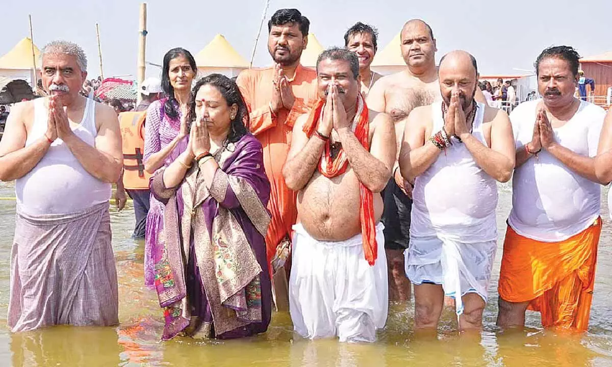 Mahakumbh Nagar: Union Education Minister Dharmendra Pradhan took a sacred bath at Triveni Sangam here on Sunday and said that the occasion is a symbol of the vibrancy of Sanatan civilisation, culture and eternal traditions.