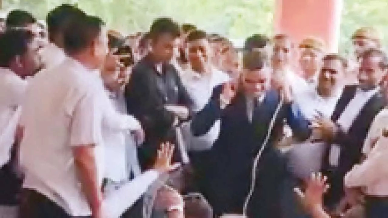 However, when a group of striking advocates pointed out the unclean state of the tehsil premises -- including dirty toilets and the presence of stray animals -- Rahi admitted the shortcoming and did sit-ups himself while holding his ears.