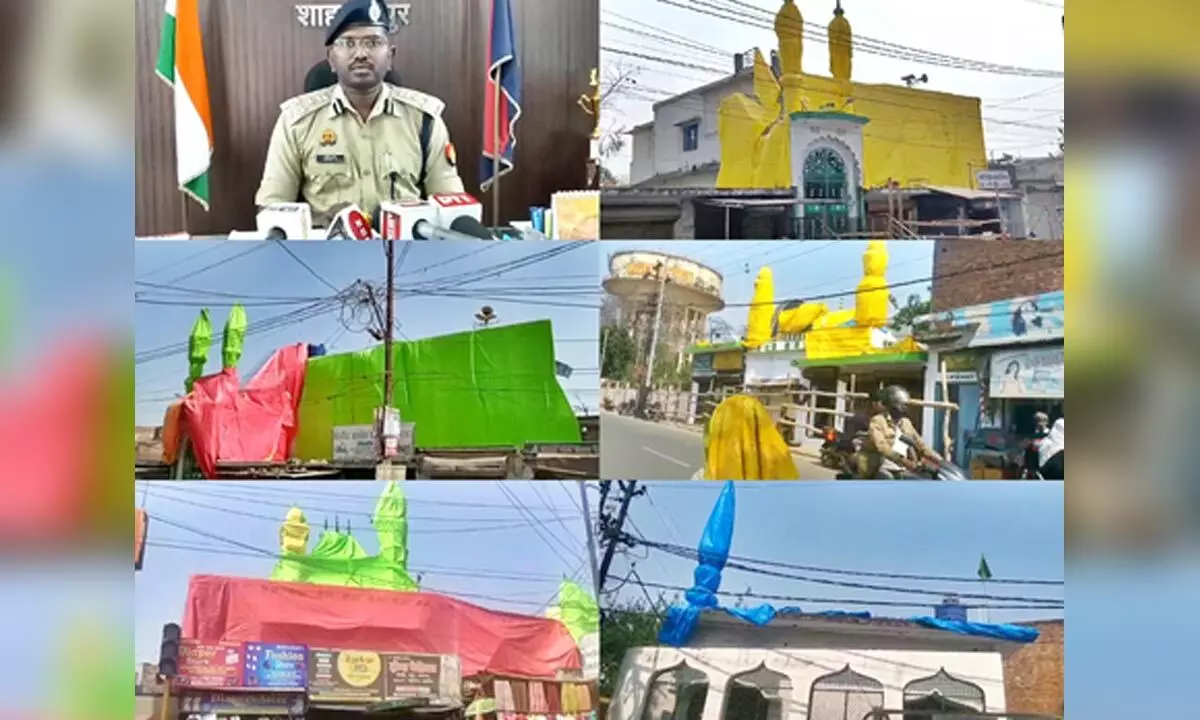 Shahjahanpur: In a bid to maintain peace and ensure the safety of religious places during the upcoming Holi celebrations, the district administration of Shahjahanpur, Uttar Pradesh, has taken a unique precautionary step with over 60 mosques in the region been covered with tarpaulin sheets ahead of the famous 'Joota Maar Holi,' a colourful and chaotic event known for its exuberant processions and exuberant revelry.
