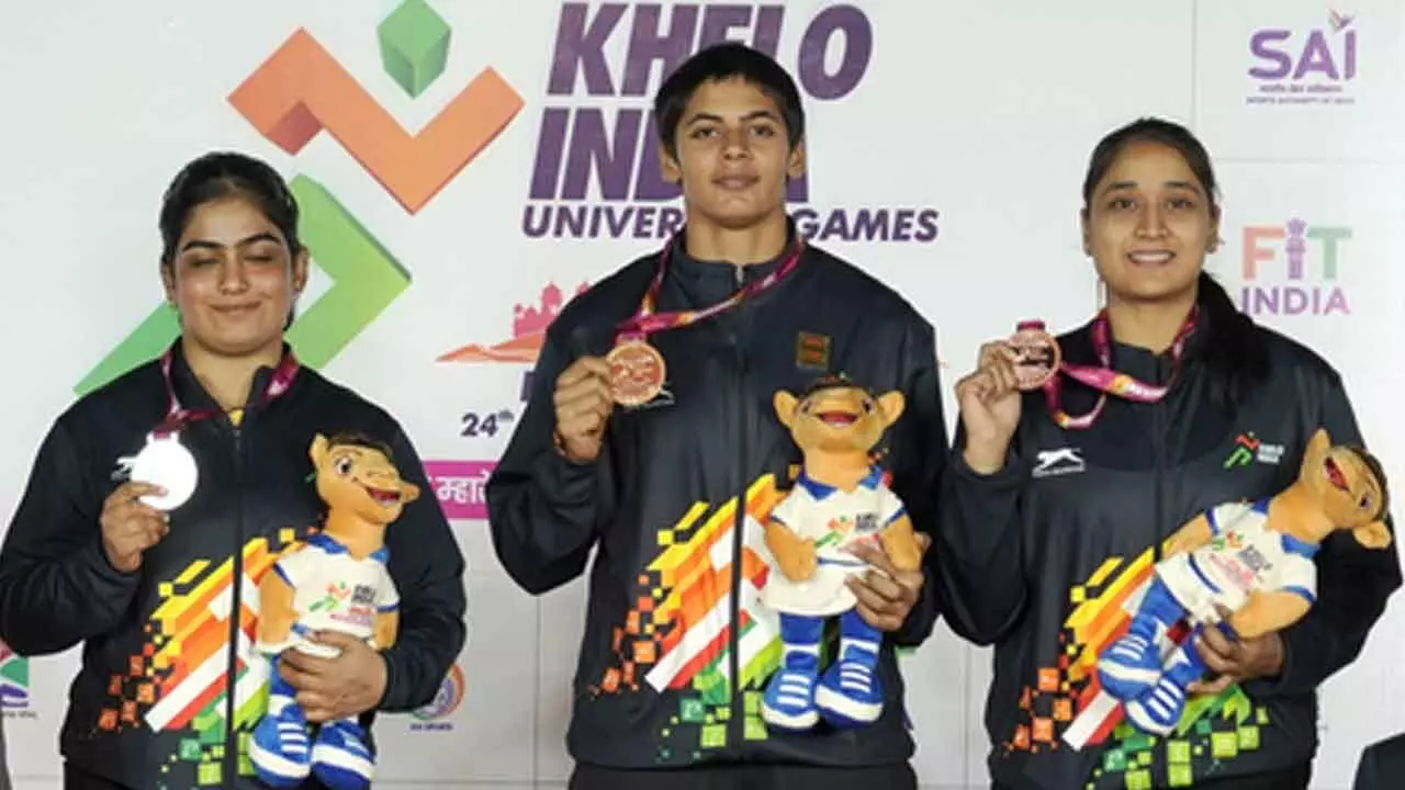 Chandigarh University’s Tanya Choudhary broke her own meet and All India University (AIU) record to clinch the women’s hammer throw gold medal while Jain University’s Keerthana and Shivaji University’s Rushiprasad Desai were crowned the fastest women and men athletes in the Khelo India University Games (KIUG) Rajasthan 2025 at the Sawai Mansingh Stadium in Jaipur on Monday.