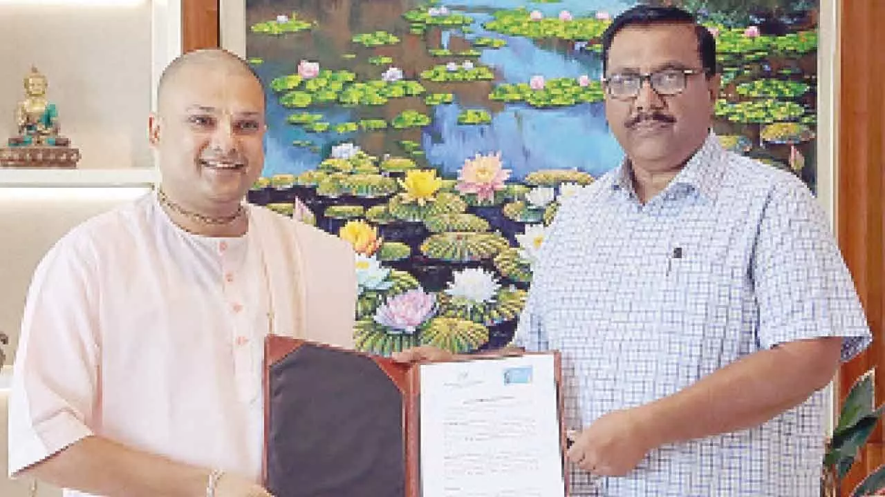 Hyderabad: The Hare Krishna Movement, Hyderabad, received a major boost for its prestigious Hare Krishna Heritage Tower Project, as Aurobindo Pharma Foundation, the philanthropic arm of Aurobindo Pharma Limited, extended its support by contributing Rs 2 crore towards building Garuda Bhavan, which will promote Indian heritage, art, and culture.