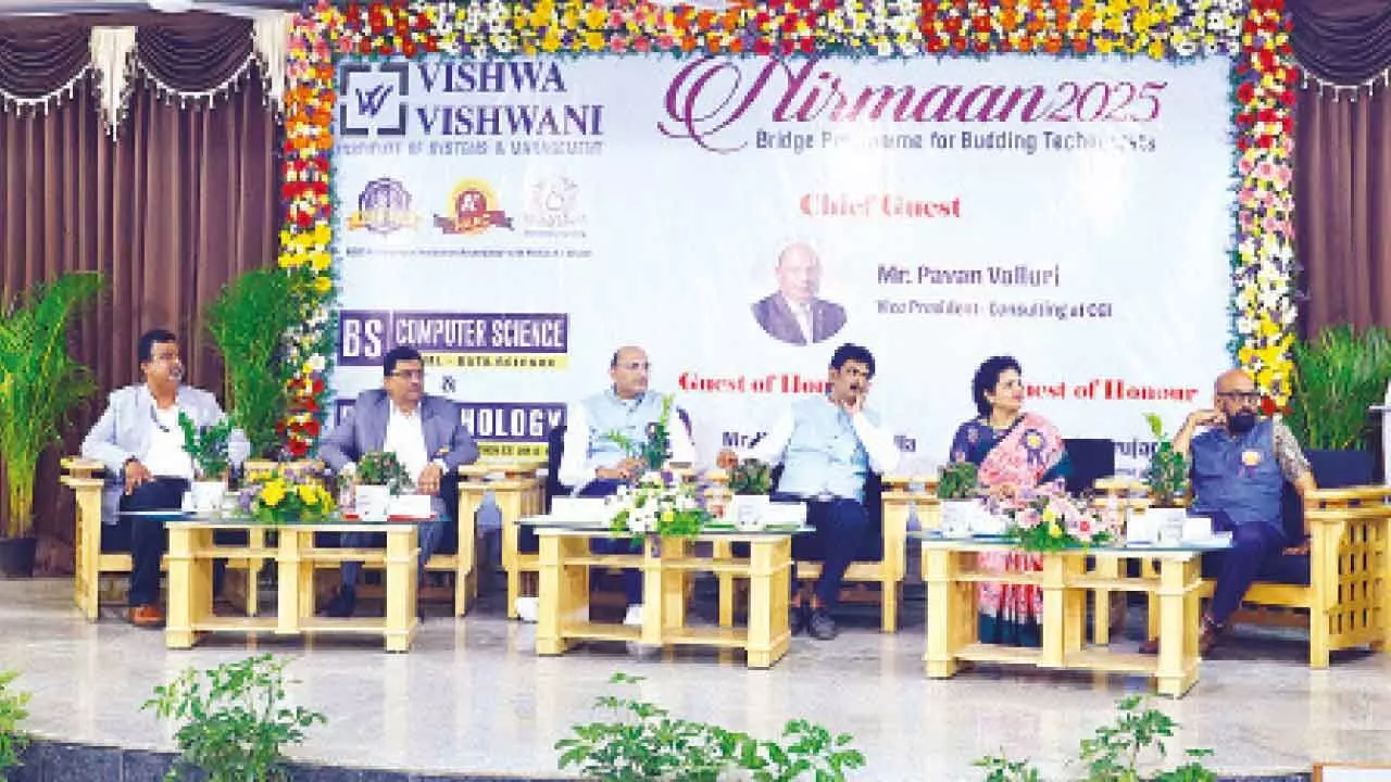 Hyderabad: The inauguration ceremony for the BS program in Computer Science and BS program in Psychology at Vishwa Vishwani Group of Institutions took place with the support of Management members Chairman Srinivasa Acharya, President G.S.S.Venkateshwar Rao , Treasurer Chinnam Sri Ramkrishna on September 3. This significant event marked a new chapter in academic excellence and innovation, welcoming students, faculty, and dignitaries who gathered to celebrate the launch of these interdisciplinary programs. Keynote speakers, including Chief Guest Pavan Valluri Vice President at CGI, Guest of honour, Kamesh Kompella,Vice President Learning & Development CTRLS and Dr Srujana Kumar, founder & Director of Greenleaf Counselling & Wellness Center emphasized the importance of continuous learning and adaptability in the fast-evolving technological landscape.