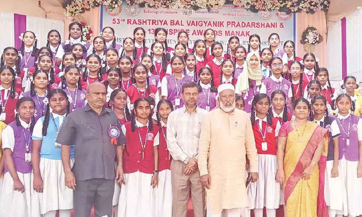 Mahabubnagar: Wanaparthy District Education Officer (DEO) Abdul Ghani congratulated the students and faculty of Srivani High School, Atmakur, for being selected for the Inspire Awards 2025 and for presenting two projects at the 53rd District-Level Children’s Science Exhibition.