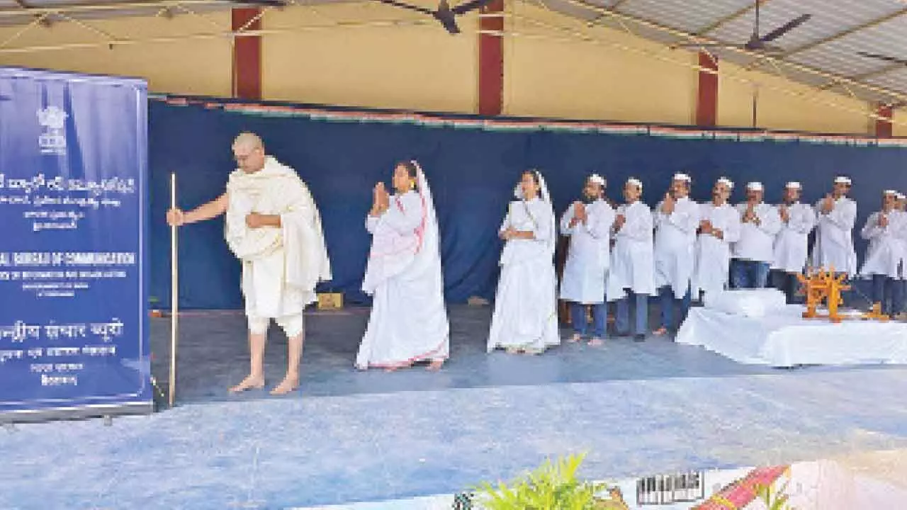 The event was held to commemorate Swachhata Pakhwada, Martyrs’ Day, and the 150th anniversary of Vande Mataram. The highlight of the proceedings was a dramatised Telugu rendition of the iconic bhajan Vaishnava Jana To, presented under the title Gandhi Margam. This performance aimed to inspire students and participants to embrace the values of compassion, service, and truth, which remain central to the philosophy of Mahatma Gandhi.