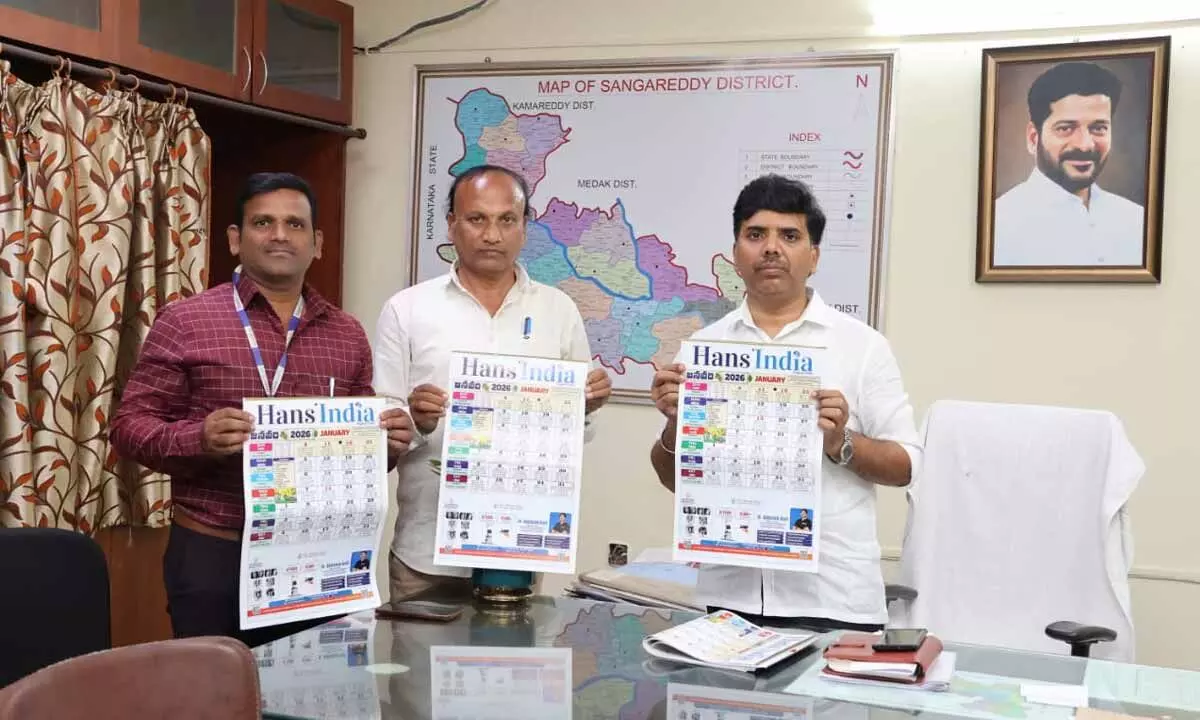 Sangareddy: District Additional Collector Chandra Shekhar said that Hans India Media has been playing a commendable role in reaching people with in-depth analytical stories and valuable information. He made these remarks on Monday while officially unveiling the Hans India 2026 New Year Calendar at his office in the presence of Hans India representatives.