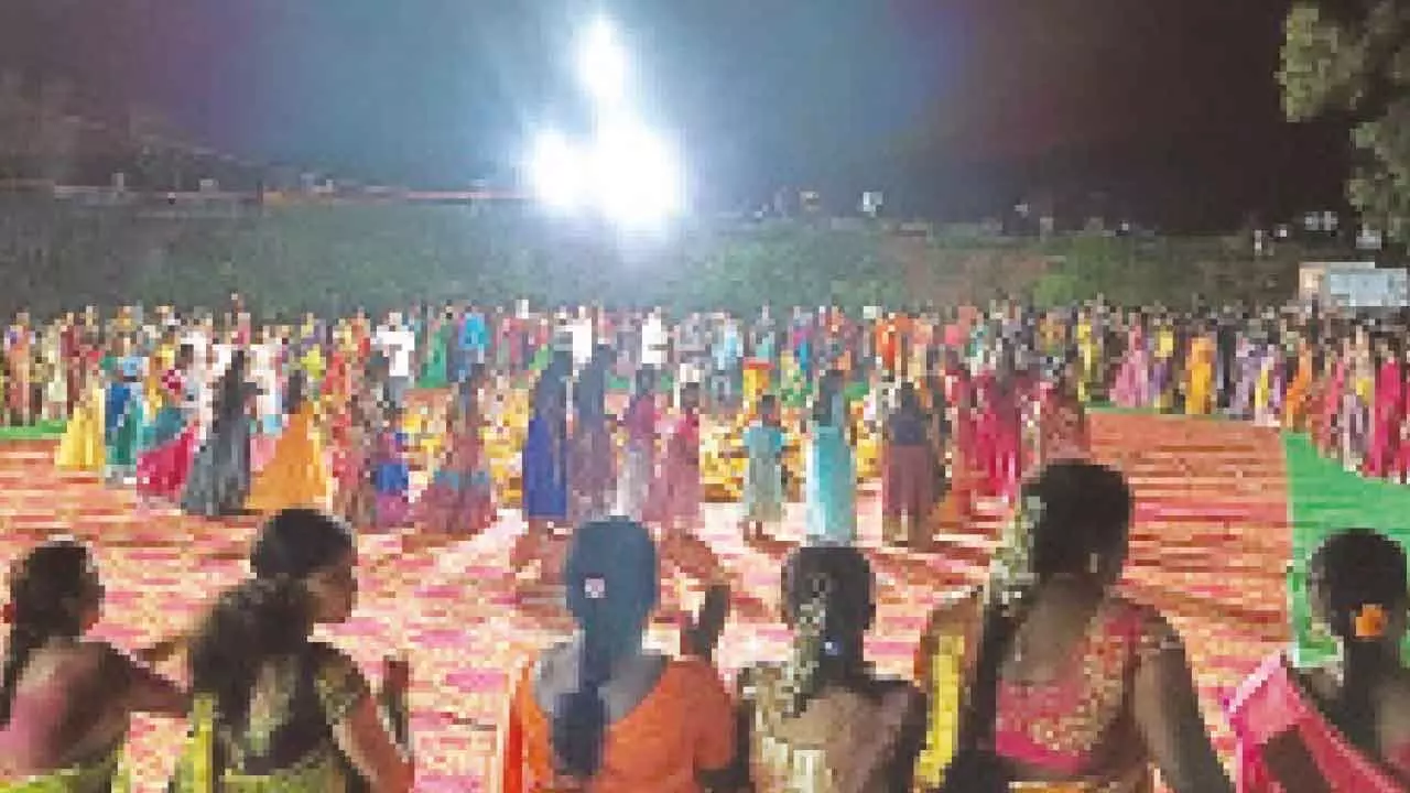 Nakrekal MLA Vemula Veeresham along with the Pushpa couple led the celebrations, adding charm to the event. Women adorned in colourful saris carried Bathukammas, singing folk songs and engaging in traditional dance forms like kolatam around the floral arrangements. Women sang uyyala songs while offering prayers to Gauramma, turning the venue into a vibrant sea of colours and devotion.