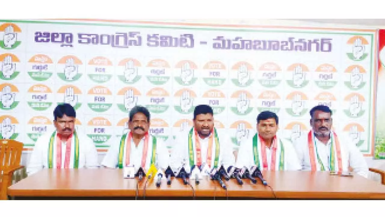 Prominent Congress leaders including DCC Media Cell Convener C.J. Benahar, District Fisheries Cooperative Society In-charge Gonnela Srinivasulu, INTUC District President Ramulu Yadav, and Minority Wing Assembly President Fakhruddin Qureshi were also present at the press meet.
