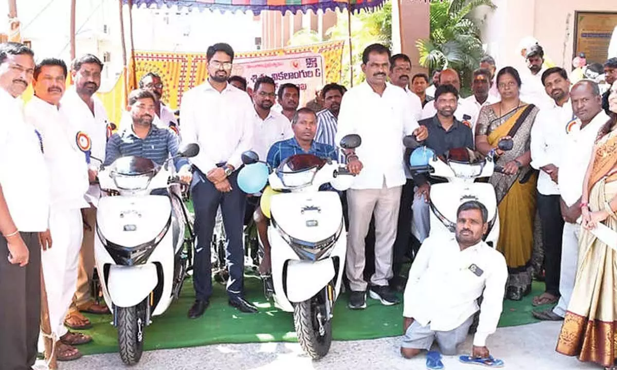 The distribution drive was organised by the District Welfare Department for the Disabled. Wanaparthy MLA Thudi Megha Reddy and District Collector Adarsh Surabhi attended the event and handed over the scooters to the beneficiaries.