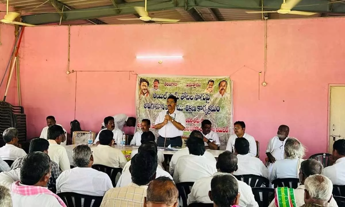An awareness seminar on oil palm cultivation was organized on Tuesday at the Mandoddi Rythu Vedika under the auspices of the District Cooperative Department (Rajoli Primary Agricultural Cooperative Society) in collaboration with the Horticulture Department and TG Oil Fed. The meeting was presided over by Primary Agricultural Cooperative Society (Single Window) Chairman Gopal Reddy.