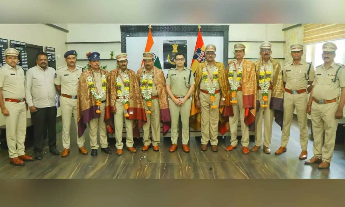 KHAMMAM: Six police personnel were felicitated on Saturday at the Khammam Police Commissioner’s Office in recognition of their dedicated service upon retirement. Police Commissioner Sunil Dutt led the ceremony, presenting each officer with a shawl, garland, and memento.