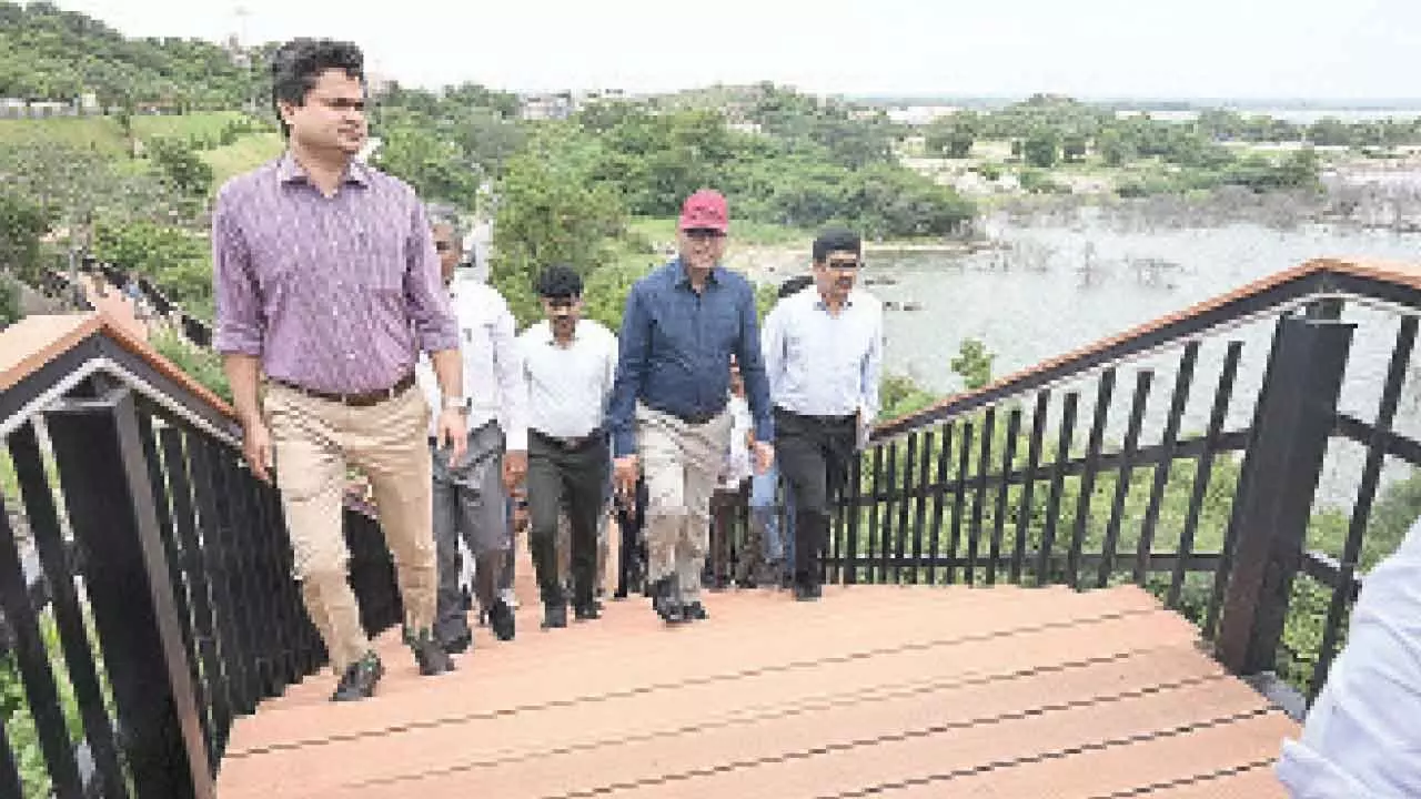 The Chief Secretary stressed the importance of effective property tax collection to finance various activities undertaken by the Urban Local Body (ULB). Following the review meeting, the Chief Secretary visited the Eco Park developed by the Hyderabad Metropolitan Development Authority (HMDA) across approximately 85 acres at Kothwalguda, at a cost of Rs 75 crore. He inspected various components of the park, such as boardwalks, the bird aviary, the arrival plaza, and other landscaped facilities. This park is slated to be opened to the public within two months by the Chief Minister, once the finishing works of the arrival plaza are complete. The Chief Secretary also visited the Budvel layout, currently under development by HMDA. The Municipal Commissioner of HMDA explained the salient features of the layout, including multiple use developments and infrastructure in the form of wide roads (45m and 36m), as well as other proposed trunk infrastructure like water supply, drainage, and underground electrification.