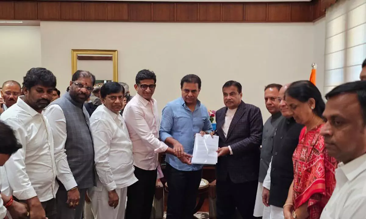 He also raised serious concerns about the introduction of a ‘No Suitable Candidate Found’ clause in the recruitment process. KTR warned that this clause could be exploited to bypass the reservation policies for SC, ST, and BC communities, allowing positions to be filled with candidates from other categories under the pretext of unavailability. He stressed that such practices would directly violate the constitutional rights granted to marginalised communities and undermine social justice. Later in the day, KTR and party leaders met Union Minister Nitin Gadkari. At the request of Korutla MLA Dr Sanjay, the party appealed for the extension of National Highway 365B from Vemulawada to Korutla. They requested the construction of a Road-cum-Rail bridge over Mid Manair Reservoir, connecting National Highway 63 through Vemulawada to Korutla.