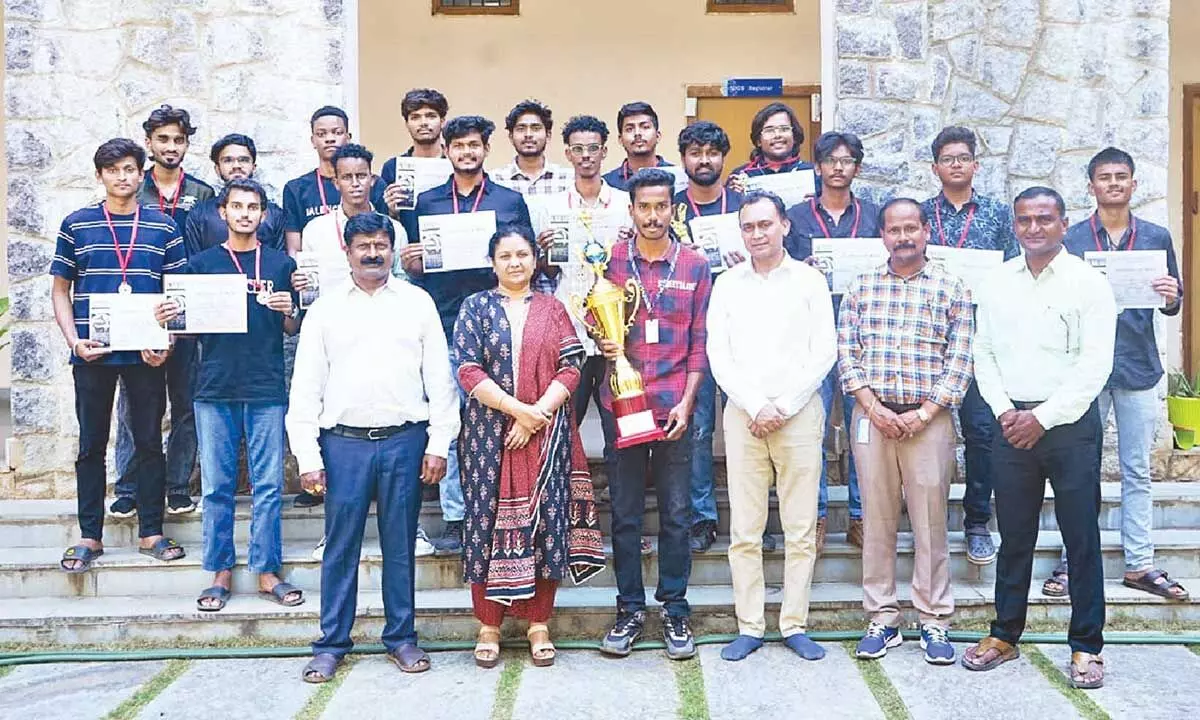 Warangal: The SR University Men’s Football Team put up an exceptional performance by securing first place, while the Women’s Volleyball Team clinched second place in the recently concluded KITS Trophy Tournament.