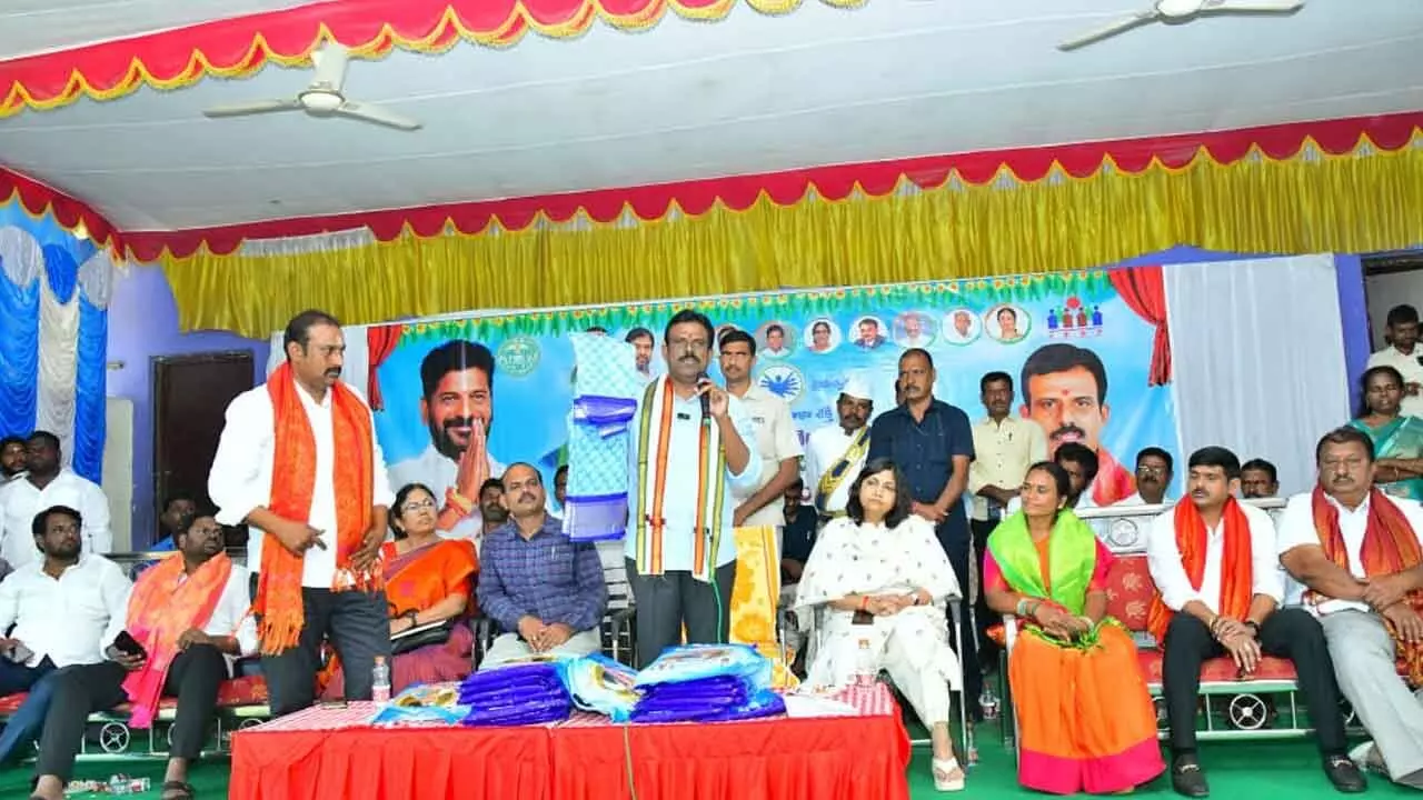 As part of the government completing two years of Praja Palana, the MLA said Chief Minister Revanth Reddy launched a massive initiative to distribute one crore Indiramma sarees to one crore eligible women across Telangana. He said women above 18 years holding a white ration card will receive a saree.
