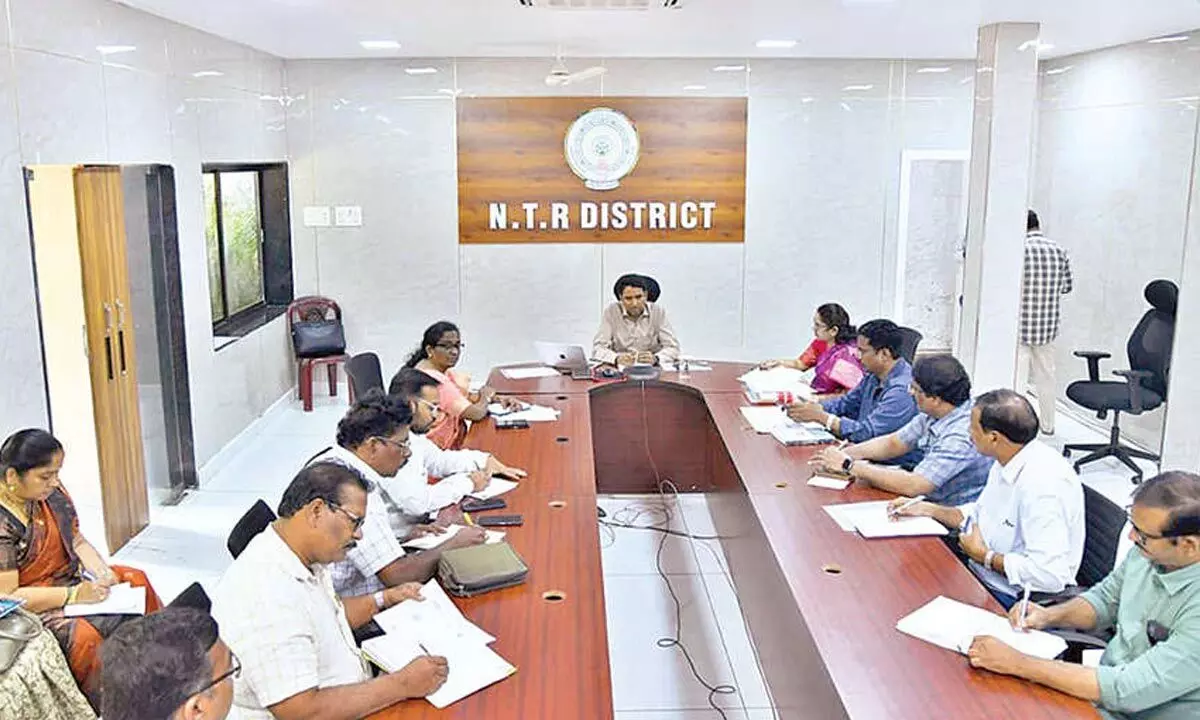 NTR district collector G Lakshmisha reviewing implementation of the 100-day action plan in Vijayawada on Tuesday