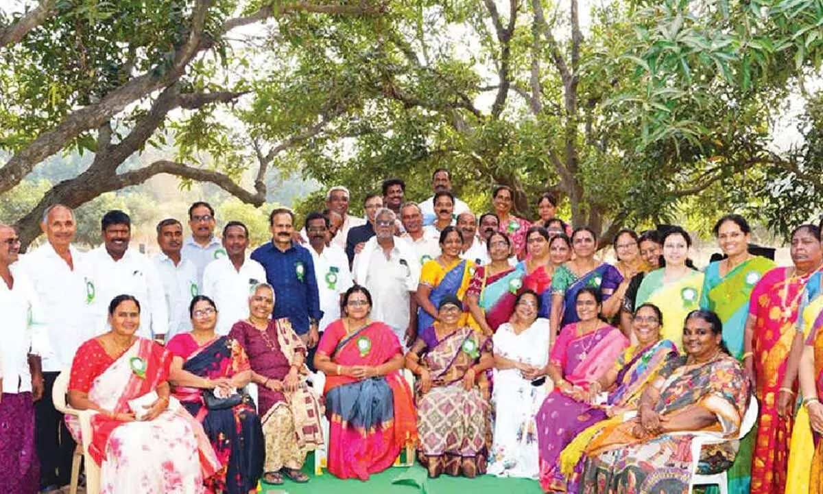 Later, the gathering moved to a nearby mango garden, where an interactive introduction session was conducted. The core organising committee—G Srinivas Reddy, T Yedukondalu (TYK), K Srinivas Reddy, G Rajasekhar Reddy, K Sridhar, A Madhavi Latha, and Madala Raja—presented mementos, gift packs, and a New Year calendar coffee table book with sweets to all participants. The alumni celebrated their reunion there the entire day.