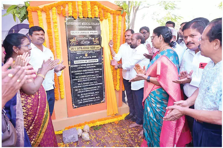 Anantapur: Medical and Health Minister Satya Kumar Yadav and Anantapur Urban MLA Daggupati Venkateswara Prasad participated in the silver jubilee celebrations of Government Medical College here on Saturday. Later, they performed bhumi puja for the silver jubilee pylon on the campus.
