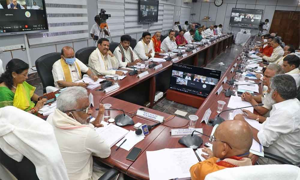 TTD Trust Board meets with chairman Y V Subba Reddy in chair, at Annamayya Bhavan at Tirumala on Thursday