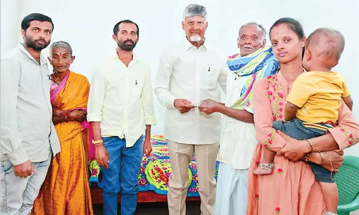 Kuppam (Chittoor district): Chief Minister N Chandrababu Naidu described NTR Bharosa pension distribution as a landmark welfare initiative. He took part in the programme at Beggilapalle village in Gudipalle mandal of Kuppam constituency on Saturday and said that pensions worth Rs 58,654 crore had been distributed across Andhra Pradesh in the last 19 months, calling it a national record.