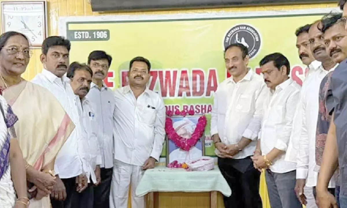 Vijayawada: On the occasion of the 30th death anniversary of Telugu Desam Party founder and former chief minister Nandamuri Taraka Rama Rao (NTR), the Bezwada Bar Association paid rich tributes by garlanding his portrait and remembering his unparalleled contributions to society.