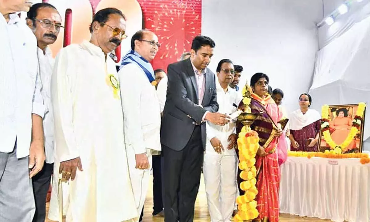 The centenary celebrations of Bhagwan Sri Sathya Sai Baba were organised on Sunday at the Tummalapalli Kshetraiah Kalakshetram in Vijayawada under the auspices of the district administration. Collector Dr Lakshmisha, Vijayawada RDO Kavuri Chaitanya, officials from various departments, and members of the Sri Sathya Sai Seva Samiti offered floral tributes to the portrait of the spiritual leader. Addressing the gathering, the collector said students must cultivate value-based education and follow the principles of “Love all, Serve all.” Vijayawada Samithi convener NVL Narasimha Rao highlighted the extensive spiritual, service, and educational activities carried out under the leadership of the Seva Samiti.