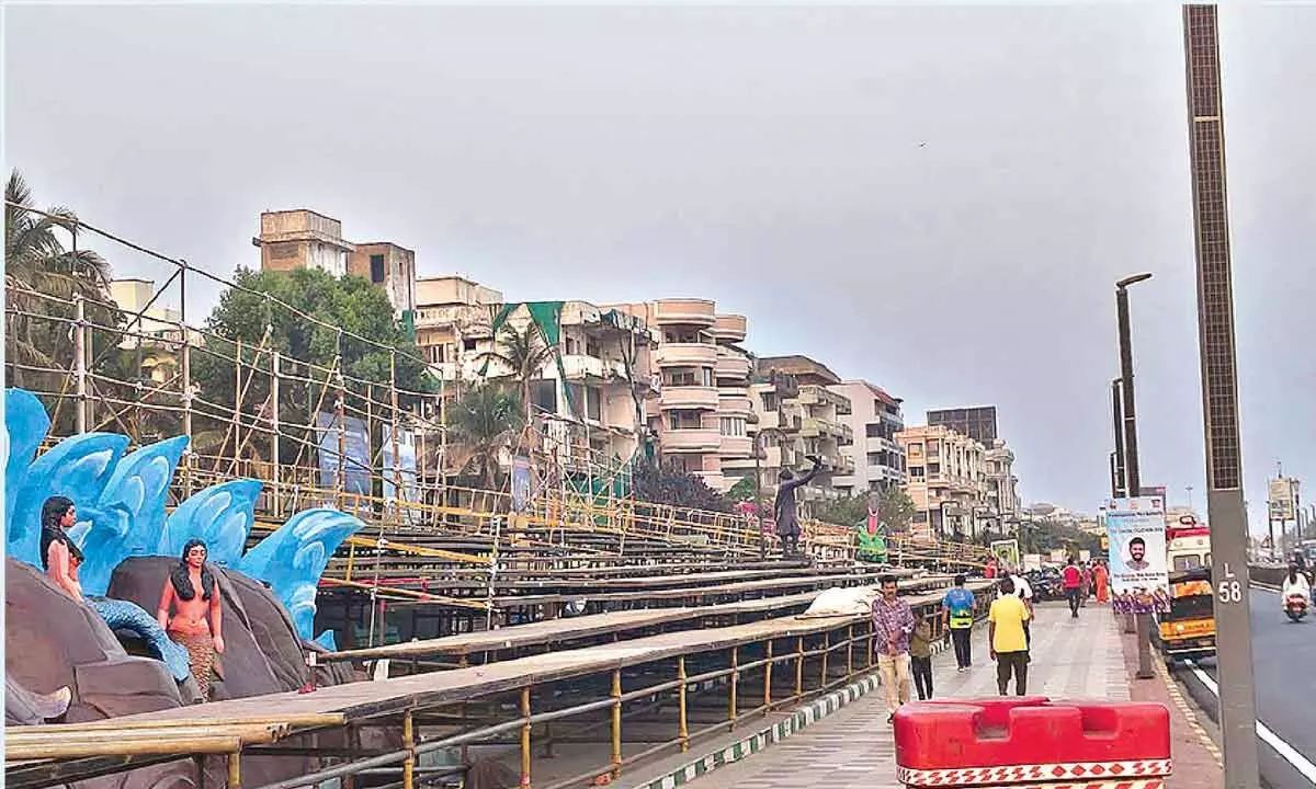 Ahead of IFR-MILAN-IONS, seating arrangements made at RK Beach in Visakhapatnam.Photo:Vasu Potnuru