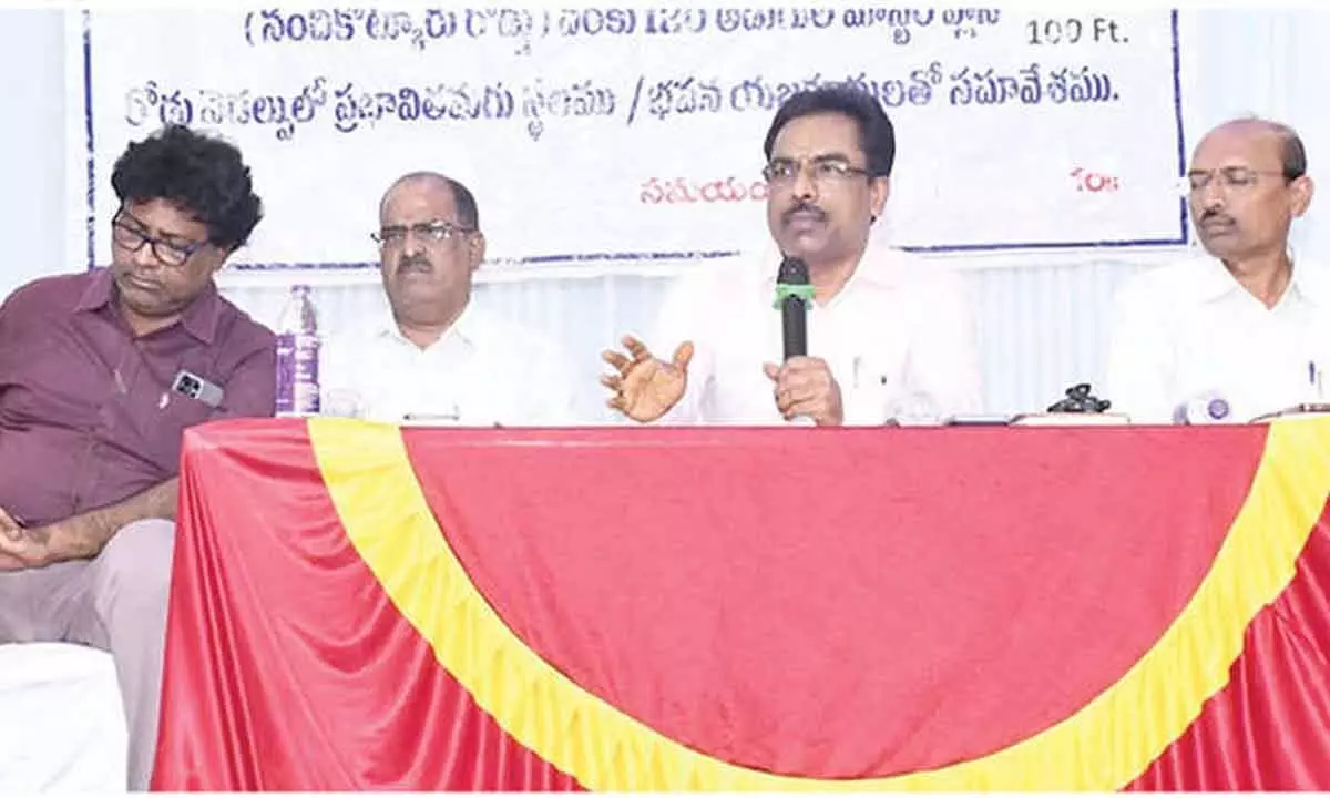 The road expansion, proposed from Sri Damodaram Sanjeevaiah Circle to KVR Gardens within the city limits, is aimed at easing traffic congestion and strengthening future transportation infrastructure. A review meeting with the affected property owners was held at Santoshi Function Hall near the checkpoint.