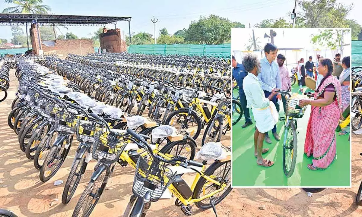Ahead of the event, the Collector inspected the e-cycle distribution counters at Gudipalli and interacted with beneficiaries, who expressed satisfaction with the arrangements. He said the cycles are being distributed across 32 mandals under the supervision of the DRDA, MEPMA and the Transport Department. Each e-cycle can run up to 40 kilometres on a single four-hour charge, offering an eco-friendly travel option for both rural and urban residents.