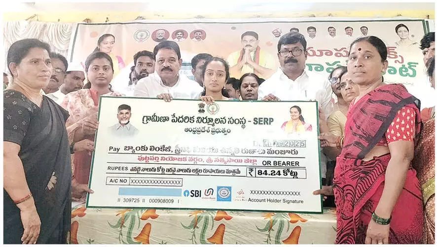She announced that ₹84.24 crore in bank linkage cheques were distributed to women’s groups under Srinidhi and Unnathi loans.
