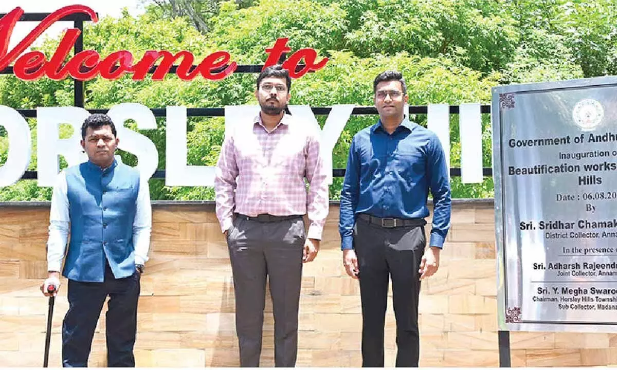 Annamayya district Collector Sridhar Chamakuri along with Joint Collector Adarsh Rajendran and Sub Collector Megha Swaroop at Horsley Hills on Wednesday