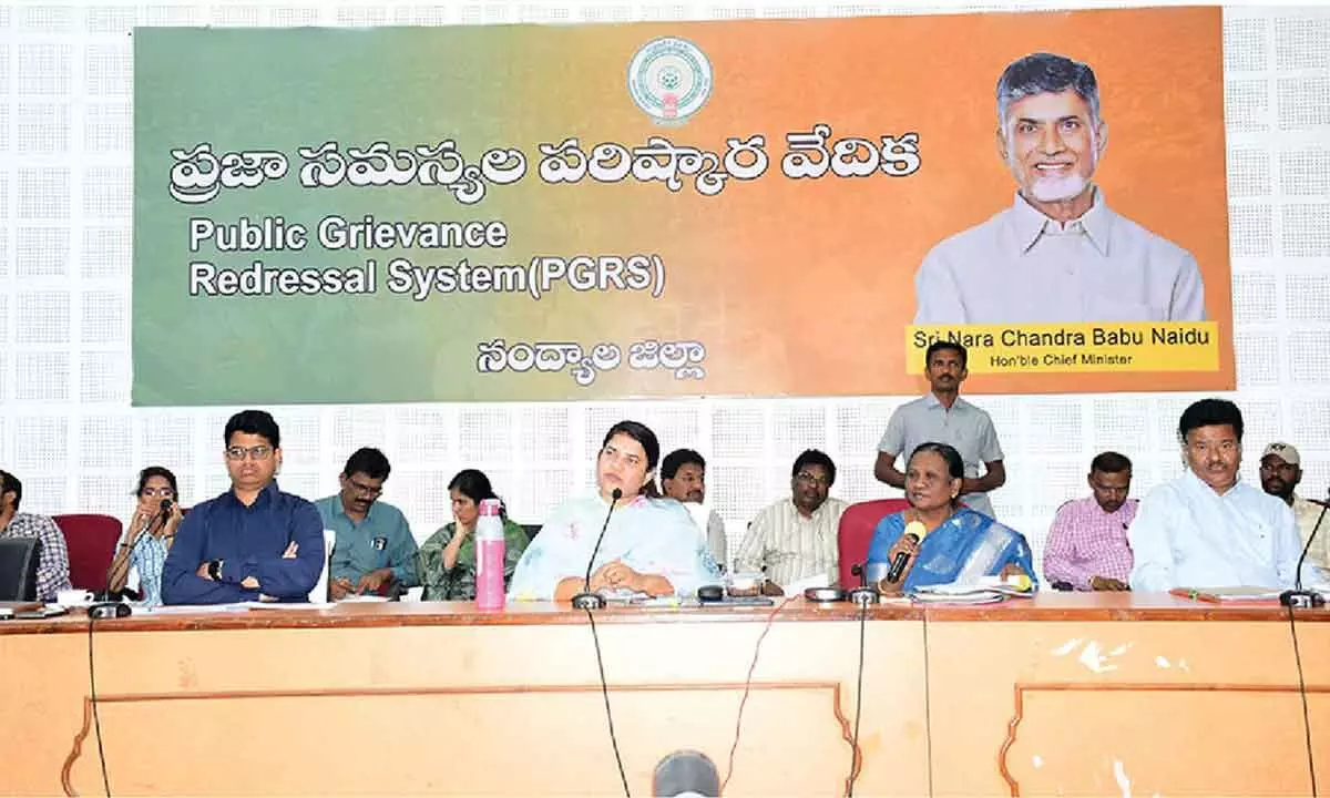 District Collector G Raja Kumari addressing a meeting at Nandyal Collectorate on Monday