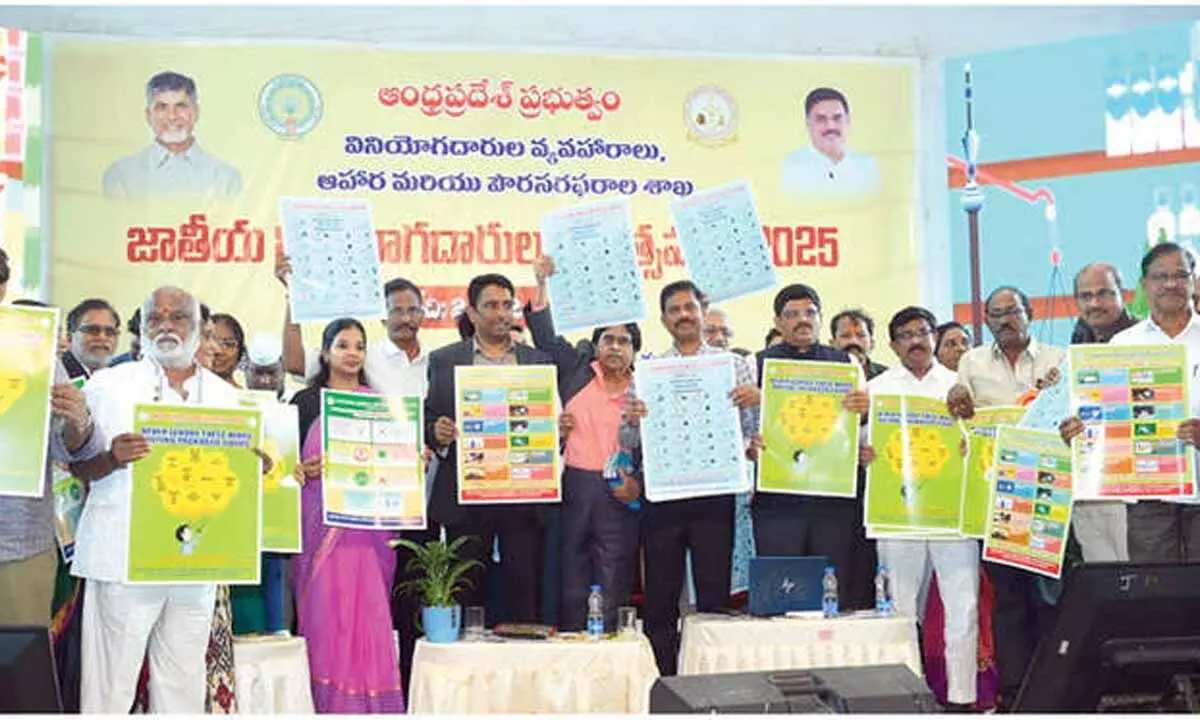 Vijayawada: AP Civil Supplies Corporation vice-chairman and managing director S Dilli Rao called upon consumers to be fully aware of their rights and remain vigilant, especially while carrying out digital transactions. He stressed that every consumer should develop a questioning attitude, as advocated by philosopher Socrates.