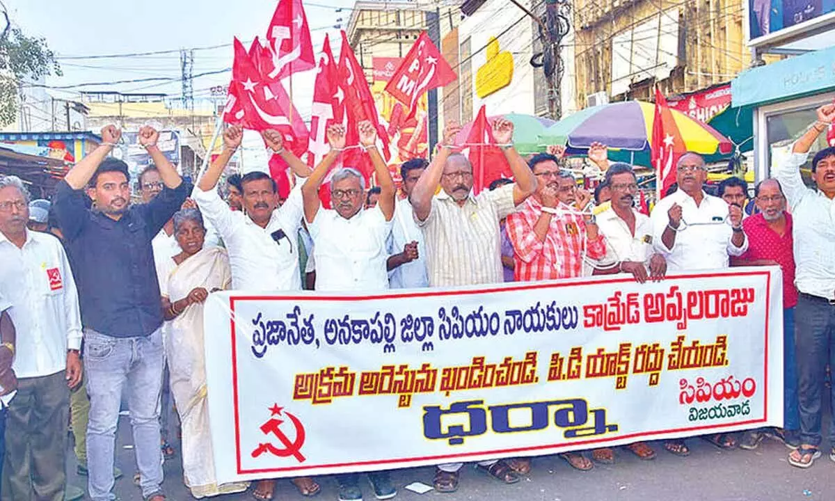 Vijayawada: The Communist Party of India (Marxist) has strongly demanded immediate withdrawal of the PD Act imposed on noted public movement activist, farmers’ leader and CPM Anakapalli district secretariat member Appalaraju, and his unconditional release. Condemning what it described as the authoritarian attitude of the ruling coalition government, CPM leaders said that suppressing public movements through illegal cases and arrests is a blatant attack on democracy.