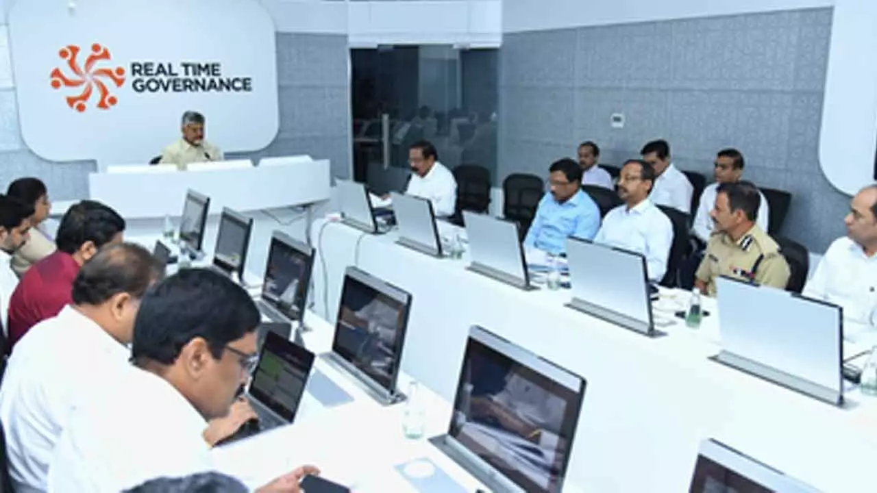The Chief Minister reviewed the developing situation from the Real Time Governance Centre (RTGS) at the Secretariat and instructed authorities to monitor the cyclone’s movement hour-to-hour and take zero-risk measures, especially in coastal and low-lying habitations.